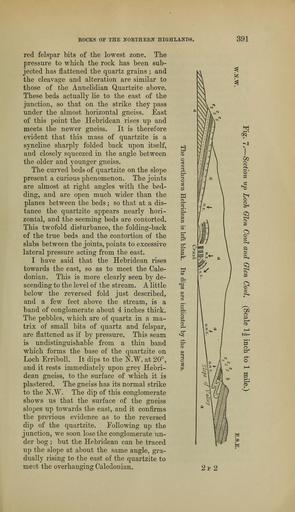 | Keywords: The Quarterly journal of the Geological Society of London (13204780465).jpg ROCKS OP THE NORTHEEN HIGHLANDS <br> 391 <br> red felspar bits of -the lowest zone The <br> pressure to which the rock has been sub- <br> jected has flattened the quartz grains ; and <br> the cleavage and alteration are similar to <br> those of the Annelidian Quartzite above <br> These beds actually lie to the east of the <br> junction so that on the strike they pass <br> under the almost horizontal gneiss East <br> of this point the Hebridean rises up and <br> meets the newer gneiss It is therefore <br> evident that this mass of quartzite is a <br> syncline sharply folded back upon itself <br> and closely squeezed in the angle between <br> the older and younger gneiss <br> The curved beds of quartzite on the slope <br> present a curious phenomenon The joints <br> are almost at right angles with the bed- <br> ding and are open much wider than the <br> planes between the beds ; so that at a dis- <br> tance the quartzite appears nearly hori- <br> zontal and the seeming beds are contorted <br> This twofold disturbance the folding-back <br> of the true beds and the contortion of the <br> slabs between the joints points to excessive <br> lateral pressure acting from the east <br> I have said that the Hebridean rises <br> towards the east so as to meet the Cale- <br> donian This is more clearly seen by de- <br> scending to the level of the stream A little <br> below the reversed fold just described <br> and a few feet above the stream is a <br> band of conglomerate about 4 inches thick <br> The pebbles which are of quartz in a ma- <br> trix of small bits of quartz and felspar <br> are flattened as if by pressure This seam <br> is un distinguishable from a thin band <br> which forms the base of the quartzite on <br> Loch Emboli It dips to the N W at 20° <br> and it rests immediately upon grey Hebri- <br> dean gneiss to the surface of which it is <br> plastered The gneiss has its normal strike <br> to the N W The dip of this conglomerate <br> shows us that the surface of the gneiss <br> slopes up towards the east and it confirms <br> the previous evidence as to the reversed <br> dip of the quartzite Following up the <br> junction we soon lose the conglomerate un- <br> der bog ; but the Hebridean can be traced <br> up the slope at about the same angle gra- <br> dually rising to the east of the quartzite to <br> meet the overhanging Caledonian <br> –º5' <br> 'S <br> £ <br> 5 <br> m <br> 2f2 36928998 113681 51125 Page 391 Text 39 http //www biodiversitylibrary org/page/36928998 1883 Geological Society of London Biodiversity Heritage Library The Quarterly journal of the Geological Society of London v 39 1883 Geology Periodicals Smithsonian Libraries bhl page 36928998 dc identifier http //biodiversitylibrary org/page/36928998 smithsonian libraries Information field Flickr posted date ISOdate 2014-03-16 Check categories 2015 August 26 CC-BY-2 0 BioDivLibrary https //flickr com/photos/61021753 N02/13204780465 2015-08-26 12 55 55 cc-by-2 0 PD-old-70-1923 The Quarterly journal of the Geological Society of London 1883 Photos uploaded from Flickr by Fæ using a script |