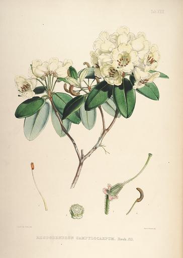 | Keywords: The rhododendrons of Sikkim-Himalaya (Tab. XXX) (8220513971).jpg <br> s <br> / <br> 3 <br> 3 <br> V <br> T J <br> – j; <br> -r-' – ¢ - <br> – 4 <br> J B H M Tit litlL <br> Utieve JbNichola imp / <br> ®lD ESfin IE Q M <br> o M® 11630741 42878 11178 Tab XXX Text http //www biodiversitylibrary org/page/11630741 1851 10 5962/bhl title 11178 Fitch W H ; Hooker Joseph Dalton; Hooker William Jackson; Reeve Benham and Reeve Biodiversity Heritage Library The rhododendrons of Sikkim-Himalaya Encyclopedia of Life Images 1849 England Ericaceae Graphic media Hand colored Himalaya Mountains Lithograph Plants Rhododendron Missouri Botanical Garden Peter H Raven Library bhl page 11630741 dc identifier http //biodiversitylibrary org/page/11630741 taxonomy binomial Rhododendron campylocarpum himalaya mountains missouri botanical garden peter h raven library taxonomy binomial rhododendron campylocarpum Information field Flickr posted date ISOdate 2012-11-26 CC-BY-2 0 BioDivLibrary https //flickr com/photos/61021753 N02/8220513971 2015-09-01 06 24 18 cc-by-2 0 PD-old-70-1923 Rhododendron campylocarpum The rhododendrons of Sikkim-Himalaya Photos uploaded from Flickr by Fæ using a script |