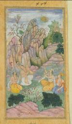 | Keywords: The sage Vyasa with disciples observes his son Sukya approaching them like a ball of fire.jpg his page is from a manuscript of the Razmnama or Book of War copied in the late 16th century at the Mughal court It was the Persian translation commissioned by the emperor Akbar of the Sanskrit epic text the Mahabharata Here the sage Vyasa accompanied by three disciples in his hermitage observes his son Suka approaching them through the air like a ball of fire The painting was purchased for the museum from the executors of the late J C French with the assistance of the National Art Collections Fund in 1955 1598 made Opaque water colour and gold on paper Height 19 7 cm picture only Width 10 5 cm picture only Victoria and Albert Museum object history The manuscript to which this page belongs has been dispersed but the main portion containing the dated colophon is now in the British Museum see G Meredith-Owens and R Pinder-Wilson A Persian Translation of the Mahabharata British Museum Quaterly vol 20 no 3 London 1956 pp 62-65 pl 19 20 credit line Purchased with the assistance of The Art Fund accession number IS 121-1955 Razmnama painting http //collections vam ac uk/item/O112323/painting-the-sage-vyasa-with-disciples/ PD-Art Uploaded with UploadWizard Vyasa |