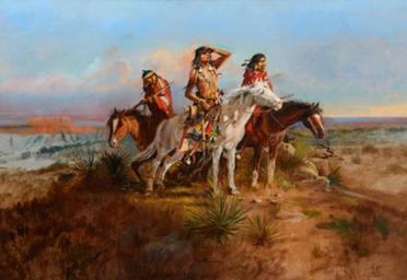 | Keywords: 'The Scouting Party' by Charles Marion Russell, oil on canvas, 24 × 36 inches.jpg title The Scouting Party ArtDaily com creator Charles Marion Russell oil canvas in 24 36 object history exhibition history credit line accession number Unclear-PD-US-old-70 Paintings of Native Americans by Charles Marion Russell Paintings of men on horseback | ||||