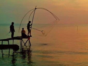 Keywords: the sea fishermen fishing rod man net afternoon twilight sunset