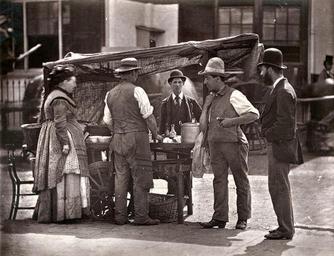 | Keywords: lse london school of economics londonschoolofeconomics street_life_in_london streetlifeinlondon fishmonger fish seller fishseller street trade streettrade street sellers streetsellers fish cart stall london oysters whelks eels street photography streetphotography market street food streetfood outdoor From 'Street Life in London', 1877, by John Thomson and Adolphe Smith: ‘“But it's hard to pick up money on the streets; there is so many at the same game now, that it's about all we can do to get food. Fridays and Saturdays we stands a better chance of extra custom. Fish on Fridays goes down with the Irish, and on Saturday nights we get often a better class of customers than on other days. The workmen and their wives and sweethearts are about then, and hardly know how to spend their money fast enough. After visiting the public-houses they finish up with a fish supper of the very finest sort. Although I say it, no finer can be got, not at Greenwich or anywhere else. I've got to know exactly what I am about, and always to keep things going on the barrow in a style that brings folks back again. It's no use for a man always on the same pitch going in for the cheap and-nasty; he couldn't stand a day against the competition of his neighbours. I never pick out anything that looks the least thing gone, for fear of losing the run of trade. When it's possible to work off some doubtful goods is at night, at the bar of a public house, when the men drinking are too far gone to be nice about smell or taste, so long as they gets something strong. But even that is a dangerous game to be tried on too often, so I for my part leaves it alone."’ For the full story, and other photographs and commentaries, follow this link and click through to the PDF file at the bottom of the description archives.lse.ac.uk/Record.aspx?src=CalmView.Catalog&i... From 'Street Life in London', 1877, by John Thomson and Adolphe Smith: ‘“But it's hard to pick up money on the streets; there is so many at the same game now, that it's about all we can do to get food. Fridays and Saturdays we stands a better chance of extra custom. Fish on Fridays goes down with the Irish, and on Saturday nights we get often a better class of customers than on other days. The workmen and their wives and sweethearts are about then, and hardly know how to spend their money fast enough. After visiting the public-houses they finish up with a fish supper of the very finest sort. Although I say it, no finer can be got, not at Greenwich or anywhere else. I've got to know exactly what I am about, and always to keep things going on the barrow in a style that brings folks back again. It's no use for a man always on the same pitch going in for the cheap and-nasty; he couldn't stand a day against the competition of his neighbours. I never pick out anything that looks the least thing gone, for fear of losing the run of trade. When it's possible to work off some doubtful goods is at night, at the bar of a public house, when the men drinking are too far gone to be nice about smell or taste, so long as they gets something strong. But even that is a dangerous game to be tried on too often, so I for my part leaves it alone."’ For the full story, and other photographs and commentaries, follow this link and click through to the PDF file at the bottom of the description archives.lse.ac.uk/Record.aspx?src=CalmView.Catalog&i... |