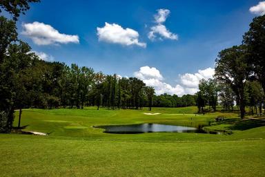 Keywords: the shoals course muscle shoals alabama golfing sand trap sports leisure recreation sky clouds summer nature outdoors forest trees woods fairway green grass vacation holiday hdr panorama lake pond reflections