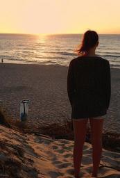 Keywords: the silhouette sunset woman girl beach sea the baltic sea sand shadows water nature holiday summer the backlight reflection