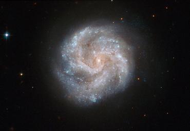 | Keywords: ic 391 ic391 black background lunar texture Hubble's Advanced Camera for Surveys has captured this moment in the ever-changing life of a spiral galaxy called IC 391. Although these massive star cities appear static and unchanging, their stellar inhabitants are constantly moving and evolving, with new stars being born and old stars reaching the ends of their lives —often in spectacular fashion, with an immense supernova explosion that can be viewed from Earth. On 3 January 2001, members of the Beijing Astronomical Observatory discovered such an explosion within IC 391 and it was named SN 2001B. This was a Type Ib supernova, which occurs when a massive star runs out of fuel for nuclear fusion and collapses, emitting vast amounts of radiation and creating a powerful shock wave. Hubble has contributed much to our understanding of supernovae in recent years, and it has made an extensive study of supernova 1987A (heic0704), the brightest such stellar explosion to be seen from Earth in over 400 years. IC 391 lies about 80 million light-years away in the constellation of Camelopardalis (the Giraffe) in the far northern part of the sky. The British amateur observer William Denning discovered it in the late nineteenth century, and described it as faint, small and round. This picture was assembled from images taken with Hubble’s Wide Field Channel on the Advanced Camera for Surveys. Images through a blue filter (F435W) were coloured blue, those through a green filter (F555W) are shown as green and those through a near-infrared filter (F814W) are shown in red. The exposure times were 800 s, 700 s and 700 s respectively and the field of view is 2.1 by 1.4 arcminutes. Hubble's Advanced Camera for Surveys has captured this moment in the ever-changing life of a spiral galaxy called IC 391. Although these massive star cities appear static and unchanging, their stellar inhabitants are constantly moving and evolving, with new stars being born and old stars reaching the ends of their lives —often in spectacular fashion, with an immense supernova explosion that can be viewed from Earth. On 3 January 2001, members of the Beijing Astronomical Observatory discovered such an explosion within IC 391 and it was named SN 2001B. This was a Type Ib supernova, which occurs when a massive star runs out of fuel for nuclear fusion and collapses, emitting vast amounts of radiation and creating a powerful shock wave. Hubble has contributed much to our understanding of supernovae in recent years, and it has made an extensive study of supernova 1987A (heic0704), the brightest such stellar explosion to be seen from Earth in over 400 years. IC 391 lies about 80 million light-years away in the constellation of Camelopardalis (the Giraffe) in the far northern part of the sky. The British amateur observer William Denning discovered it in the late nineteenth century, and described it as faint, small and round. This picture was assembled from images taken with Hubble’s Wide Field Channel on the Advanced Camera for Surveys. Images through a blue filter (F435W) were coloured blue, those through a green filter (F555W) are shown as green and those through a near-infrared filter (F814W) are shown in red. The exposure times were 800 s, 700 s and 700 s respectively and the field of view is 2.1 by 1.4 arcminutes. |