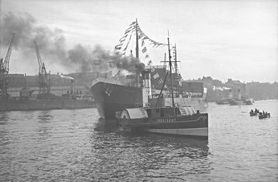 | Keywords: sunderland shipbuilding j.l. thompson & sons ltd jlthompsonsonsltd ship launches shiplaunches north sands sunderland northsandssunderland shipyard tanker gomphina river wear riverwear blackandwhite monochrome outdoor boat vehicle black and white View of the tanker ‘Gomphina' being towed by the tugboat ‘President’ after launch from the North Sands shipyard of J.L. Thompson & Sons Ltd, 14 October 1947 (TWAM ref. DT.TUR/2/876B). Tyne & Wear Archives is proud to present a selection of images from its Sunderland shipbuilding collections. The set has been produced to celebrate Sunderland History Fair on 7 June 2014. It's a reminder of the thousands of vessels launched on the River Wear and the many outstanding achievements of Sunderland’s shipyards and their workers. These photographs reflect Sunderland’s history of innovation in shipbuilding and marine engineering from the development of turret ships in the 1890s through to the design for SD14s in the 1960s. The Sunderland shipbuilding collections are full of fascinating stories. Some of these are represented in this set, such as the ‘Rondefjell’, launched in two halves on the River Wear by John Crown & Sons Ltd and then joined together on the River Tyne. The set also shows the vital part that Sunderland’s shipbuilding industry played during the First World War. William Doxford & Sons Ltd built Royal Naval destroyers such as HMS Opal, which served in the Battle of Jutland, while other yards constructed cargo ships to help keep these shores supplied. (Copyright) We're happy for you to share these digital images within the spirit of The Commons. Please cite 'Tyne & Wear Archives & Museums' when reusing. Certain restrictions on high quality reproductions and commercial use of the original physical version apply though; if you're unsure please email archives@twmuseums.org.uk View of the tanker ‘Gomphina' being towed by the tugboat ‘President’ after launch from the North Sands shipyard of J.L. Thompson & Sons Ltd, 14 October 1947 (TWAM ref. DT.TUR/2/876B). Tyne & Wear Archives is proud to present a selection of images from its Sunderland shipbuilding collections. The set has been produced to celebrate Sunderland History Fair on 7 June 2014. It's a reminder of the thousands of vessels launched on the River Wear and the many outstanding achievements of Sunderland’s shipyards and their workers. These photographs reflect Sunderland’s history of innovation in shipbuilding and marine engineering from the development of turret ships in the 1890s through to the design for SD14s in the 1960s. The Sunderland shipbuilding collections are full of fascinating stories. Some of these are represented in this set, such as the ‘Rondefjell’, launched in two halves on the River Wear by John Crown & Sons Ltd and then joined together on the River Tyne. The set also shows the vital part that Sunderland’s shipbuilding industry played during the First World War. William Doxford & Sons Ltd built Royal Naval destroyers such as HMS Opal, which served in the Battle of Jutland, while other yards constructed cargo ships to help keep these shores supplied. (Copyright) We're happy for you to share these digital images within the spirit of The Commons. Please cite 'Tyne & Wear Archives & Museums' when reusing. Certain restrictions on high quality reproductions and commercial use of the original physical version apply though; if you're unsure please email archives@twmuseums.org.uk |