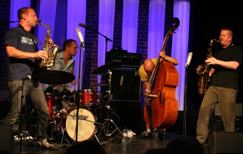 | Keywords: The Thing at Kongsberg Jazzfestival.JPG en Nowegian/Swedish free jazz trio The Thing plays with Ken Vandermark at Kongsberg Jazzfestival 2008 Kongsberg Norway From left Mats Gustafsson Sweden Paal Nilssen-Love Norway Ingebrigt Håker Flaten Norway Ken Vandermark Sweden 2008-07-03 own Nittentrikken cc-zero Uploaded with UploadWizard Ken Vandermark Kongsberg Jazzfestival 2008 The Thing | ||||