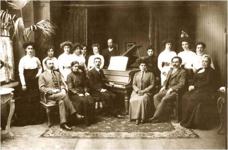 | Keywords: The Tiflis music school. In the centre the head of the school N. Nicolaev and the pianist Anna Thulashvili, 1910.JPG en The Tiflis music school In the centre the head of the school N Nicolaev and the pianist Anna Thulashvili 1910 ა ა თულაშვილი 1910 წ http //www photomuseum org ge/klar/06_en htm www photomuseum org ge en http //www photomuseum org ge/klar/06_ge htm www photomuseum org ge ge Creator Eduard Klar 1910 1910 in Tbilisi Ana Tulashvili Tbilisi State Conservatoire Photos of Eduard Klar Source http //www photomuseum org ge/ www photomuseum org ge PD-old |