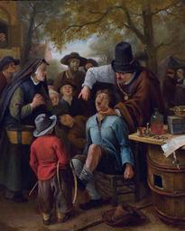 | Keywords: The Tooth-Puller, by Jan Steen.jpg Artwork Q17275839 creator Jan Steen 1651 Ucfirst Oil on canvas cm 32 5 26 7 Institution Mauritshuis Ucfirst Anonymous de-kiezentrekker-165 LangSwitch The Tooth-Puller De kiezentrekker Mauritshuis museum catalog 51 LangSwitch The dentist De tandmeester object history ProvenanceEvent B Warnaar by 1758 Willem Lormier 1682-1758 The Hague ProvenanceEvent 1763-07-04 sale Willem Lormier T P C Haag A Franken The Hague 252 ˜Een Tandetrekker en veel Omstanders P - Breet 10¼ D uim - Hoog 1 V oet ¼ D uim ™ Price NLG 160 Willem V van Oranje-Nassau 1748-1806 The Hague ProvenanceEvent 1795 nationalization exhibition history credit line place of creation The Hague On the piece of paper Jan Steen 020 jpg Jan Steen 020 black and white 01 jpg Version in black and white from mus cat ca 1900 www mauritshuis nl http //www mauritshuis nl Home http //www mauritshuis nl/nl-nl/verdiep/de-collectie/kunstwerken/de-kiezentrekker-165/ Info http //www mauritshuis nl/-/media/ba3a1574c67f45bdbef386dab2eb25db ashx Pic accession number 165 PD-old-100 Uploaded with UploadWizard Genre paintings by Jan Steen 1651 Paintings by Jan Steen in the Mauritshuis 1651 |