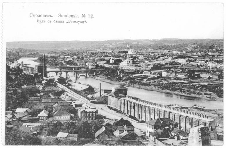 Keywords: The view from the tower Veseluha 4.jpg en The view from the tower area to Veseluha current street Sobolev fortification in the Dnieper River in present-day Zadneprovsky district of Smolensk ru Вид с башни Веселуха на айон нынешней улицы Соболева к епостной стены у Днеп а те ито ии сов еменного Заднеп овского айона Смоленска О игинальная отк ытка е установлены До 1917 года PD-RusEmpire 20th-century postcards Postcards of Smolensk