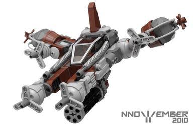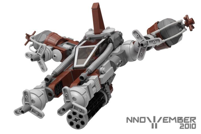 Keywords: canon 100mm canon100mm lego fighter sky-fi skyfi steampunk vic viper vicviper nnovvember 2010 moc white background Lift for this thing is provided by two floating rocks fastened to the rear wings, and forward motion by four steamball-powered propeller engines. This is heavily influenced by the work of Pain Parade. He even posted a design with a similar engine arrangement a few days ago, though I did have this mostly built before that. Lift for this thing is provided by two floating rocks fastened to the rear wings, and forward motion by four steamball-powered propeller engines. This is heavily influenced by the work of Pain Parade. He even posted a design with a similar engine arrangement a few days ago, though I did have this mostly built before that.
