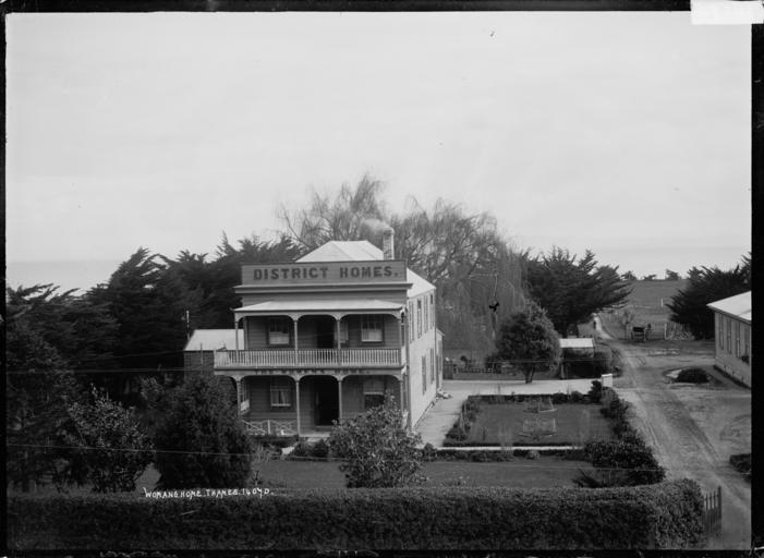 | Keywords: blackandwhite monochrome outdoor photo border building architecture black and white The Women's Home (District Homes), Thames. A two storied wooden building surrounded by a formal garden. `The Women's Home' is written across the front and a large sign at the roof level reads `District Homes'. Paddocks can be seen beyond the trees at the back. The Men's Home is situated next door in the same grounds (to the right). Photograph taken by William A Price in early 1900s. Inscriptions: Inscribed - Photographer's title on negative -bottom left: Women's Home. Thames. 1407D. Quantity: 1 b&w original negative(s). Physical Description: Dry plate glass negative 4.75 x 6.5 inches The Women's Home, Thames. Price, William Archer, 1866-1948 :Collection of post card negatives. Ref: 1/2-001164-G. Alexander Turnbull Library, Wellington, New Zealand. natlib.govt.nz/records/23252190 The Women's Home (District Homes), Thames. A two storied wooden building surrounded by a formal garden. `The Women's Home' is written across the front and a large sign at the roof level reads `District Homes'. Paddocks can be seen beyond the trees at the back. The Men's Home is situated next door in the same grounds (to the right). Photograph taken by William A Price in early 1900s. Inscriptions: Inscribed - Photographer's title on negative -bottom left: Women's Home. Thames. 1407D. Quantity: 1 b&w original negative(s). Physical Description: Dry plate glass negative 4.75 x 6.5 inches The Women's Home, Thames. Price, William Archer, 1866-1948 :Collection of post card negatives. Ref: 1/2-001164-G. Alexander Turnbull Library, Wellington, New Zealand. natlib.govt.nz/records/23252190 |