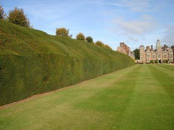 Keywords: The Yew Hedge Blickling.JPG yew hedge is located at the front approach of Blickling and dates back to the 18th century own Northmetpit 2009-10-18 Blickling Hall Gardens Hedges in England Taxus baccata topiary