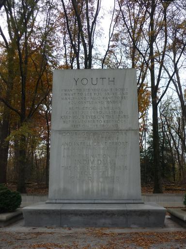| Keywords: The Youth stone tablet.JPG en One of four tablets which stand on both sides of the Theodore Roosevelt Sculpture on Theodore Roosevelt Island This tablet bears quotes on the subject of the Youth I want to see you game boys I want to see you brave and manly and I also want to see you gentle and tender Be practical as well as generous in your ideals Keep your eyes on the stars and keep your feet on the ground Courage hard work self-mastery and intelligent effort are all essential to successful life Alike for the nation and the individual the one indispensable requisite is character 2013-11-21 14 17 37 own Discol Uploaded with UploadWizard Theodore Roosevelt Island National Memorial |