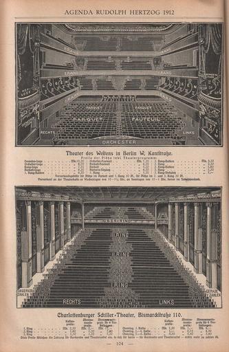 | Keywords: Theater des Westens in Berlin W, Kantstraße und Charlottenburger Schiller-Theater, Bismarckstraße 110, Bestuhlung 1912.jpg Rudolph Hertzog Agenda 1912 Jahreskalender des Berliner Kaufhauses Seite 104 Theater des Westens in Berlin W Kantstraße und Charlottenburger Schiller-Theater Bismarckstraße 110 Leinen 224 Seiten 19 5 x 28 5 cm Collection Kuhn 1912 publication date author PD-old <gallery> File Theater des Westens in Berlin W Kantstraße Bestuhlung 1912 jpg File Charlottenburger Schiller-Theater Berlin Bismarckstraße 110 Bestuhlung 1912 jpg </gallery> Rudolph Hertzog Agenda 1912 104 Theater des Westens Schillertheater Berlin |