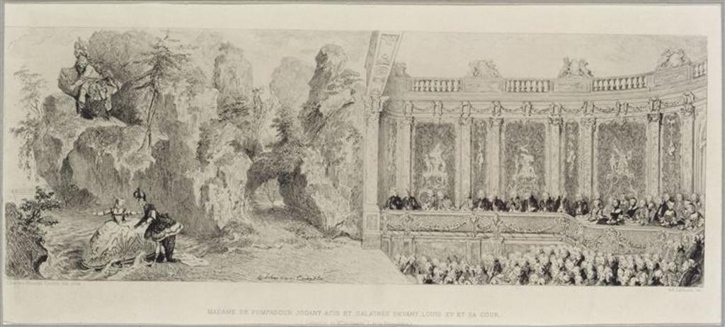 | Keywords: Théâtre installé dans la cage d’escalier des Ambassadeurs.jpg Acis et Galathée 1686 in front of Louis XV and his court 1749 Acis et Galathée 1686 devant Louis XV et sa cour 1749 en etching fr estampe cm 30 4 42 6 ; image cm 17 38 5 Versailles Musée national du Château et des Trianons Campistron et Lully Acis et Galatée 1686 donné sur la scène du théâtre des Petits Cabinets installé en 1748 dans la cage d'escalier des Ambassadeurs à Versailles représentation du 23 janvier ou du 10 février 1749 RMN http //www photo rmn fr/LowRes2/TR1/YL8NH/97-003002 jpg 19th century 19 e siècle en Adolphe Lalauze 1838 “1906 engraver after Charles-Nicolas Cochin the Younger 1715 “1790 painter fr Adolphe Lalauze 1838 “1906 graveur d'après Charles-Nicolas Cochin le Jeune 1715 “1790 peintre Other versions PD-old-100 GFDL relicense Engravings of interiors of palaces Versailles Interior of the Palace of Versailles in art Engravings 19th-century engravings Adolphe Lalauze Charles-Nicolas Cochin fils Engravings of groups Events in Versailles 1749 France in the 1740s 1749 Louis XV of France Marie LeszczyÅ„ska Madame de Pompadour Musée national du Château de Versailles Opera costumes Opera in art Compositions by Jean-Baptiste Lully Stages in France Temporary theaters in Versailles 1749 Vues d ™intérieures du Château de Versailles “époque de Louis XV Stages in art |