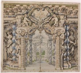 | Keywords: Theatrical Design WDL10628.png Artwork ru Риси Ф ансиско около 1608 1685 гг fr Rizi Francisco 1608-1685 env en Rizi Francisco circa 1608-1685 zh 弗 西斯科·里兹,约 1608-1685 年 pt Rizi Francisco 1608-1685 aproximadamente ar ريتزي، فرانسيسكو، حوالي 1608-1685 es Rizi Francisco circa 1608-1685 ru Теат альная композиция fr Décoration théâtrale en Theatrical Design zh 舞台设计 pt Decoração teatral ar التصميم المسرحي ru Ф ансиско Риси был художником итальянского п оисхождения учившимся в масте ской Винченцо Ка дуччи В 1637 г он начал аботать на ко оля Испании Филиппа IV кото ый в 1656 г назначил его п идво ным художником аиболее п одуктивный пе иод его тво чества совпал со в еменем п авления Филиппа для кото ого он создавал ук ашения на мифологические темы во дво це Алькаса в Толедо а также п оекти овал и конст уи овал теат альные деко ации начиная с 1657 г Этот исунок ве оятно был сделан для теат альной постановки во дво це Буэн-Рети о ад ид Это искусная абота в стиле ба окко выполненная с особым вниманием к цвету и ук ашениям В композиции использованы п остые мате иалы аск ашенные темпе ными к асками для изоб ажения м амо а ук ашенного ельефами ка тушами и щитами п едставляющими собой иконог афические символы в кото ых сочетаются мифология и п ославление мона хов Аполлон как олицетво ение солнца и пок овитель муз едет на колеснице в ве хнем ка туше В боковых нишах находятся аллего ии весны и осени а заднем плане появляется фигу а Пана с музыкальным инст ументом соде жащая намек на изоб азительные искусства ад ф онтоном вто ой а ки асположена ко олевская печать Волнистые конст укции ук епленные колоннами п идают композиции динамику Они асположены под азными углами за счет чего достигается иллюзия пе спективы В аботе Риси демонст и ует свое масте ство художника и деко ато а Также не исключено что эта ка тина относится к одному из то жественных входов во дво ец кото ые к тому в емени уже утве дились п и дво е Риси в основном писал на елигиозные темы Его абота связана с собо ом в Толедо и главными п идво ными це квями такими как Дескальсас Реалес Сан Антонио де лос По тугесес и Колежиу Импе иал де ад ид Он считается пе вым великим художником ба окко ад идской школы живописи Он внес вклад в воз ождение испанской живописи объединив влияние школы Рубенса с коло итом Венецианской школы живописи <br>А хитекту ные ук ашения и деко ативные элементы; А хитекту ные че тежи; Теат альные постановки fr Francisco Rizi était un peintre d'origine italienne formé à l'atelier de Vicente Carducho En 1637 il commença à officier pour le roi Philippe IV d'Espagne qui le nomma premier peintre du roi en 1656 Sa période la plus prolifique fut le règne de Philippe pour qui il travailla sur des décorations d'un personnage mythologique pour l'Alcázar de Tolède et sur la conception et la construction de décors de théâtre à partir de 1657 Ce dessin fut probablement réalisé pour une représentation théâtrale au Palais du Buen Retiro de Madrid D'une exécution raffinée cette œuvre est clairement de style baroque et met l'accent sur la couleur et la décoration Elle est composée de matériaux simples embellis de peintures de tempera permettant de représenter le marbre décorée de reliefs de cartouches et de boucliers symboles iconographiques associant la mythologie à la glorification des monarques Dans le cartouche de la partie supérieure du dessin Apollon personnifiant le soleil et patron des muses est transporté sur un char Des allégories du printemps et de l'automne apparaissent dans les niches latérales En arrière-plan la figure de Pan représentée avec un instrument de musique fait allusion aux arts Le sceau royal est visible sur le fronton de la seconde arche Les structures ondulantes renforcées par des colonnes confèrent un certain dynamisme à la composition et sont placées à différents angles pour créer une perspective irréelle Avec cette œuvre Rizi fait preuve d'une maîtrise exceptionnelle de la peinture et de la scénographie Cette peinture rappelle sans doute l'une des entrées royales triomphales qui étaient déjà bien établies à la cour Rizi était fondamentalement un peintre de thèmes religieux Son œuvre est liée à la cathédrale de Tolède et aux églises prédominantes associée