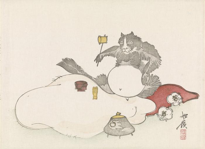 | Keywords: Theeceremonie van een wasbeer-Rijksmuseum RP-P-1995-339.jpeg accession number RP-P-1995-339 Shôrei credit line GWToolset Rijksmuseum nl De wasbeer zit met bolle buik klaar voor de theeceremonie Alle attributen zijn klaargezet op zijn enorme scrotum Op de voorgrond een komfoortje Wasberen zijn in Japan magische dieren hun enorme testikels symboliseren financieel geluk Een Shijo-stijl surimono met meerdere korte gedichten Label Line mentioned on object Shôrei ca 1840 - ca 1880 kleurenhoutsnede; lijnblok in zwart met kleurblokken Collection prenten; Japan collectie blad Height mm 522 blad Width mm 199 exhibition history paper object history Acquisition 1995 object type prent PD-US PD-old Data and photography rights All data and all images made available through the API are either in the public domain or are subject to a CC0 license https //www rijksmuseum nl/en/api/terms-and-conditions-of-use cc-zero place of creation Japan http //www rijksmuseum nl/collectie/RP-P-1995-339 http //hdl handle net/10934/RM0001 COLLECT 318924 handle Theeceremonie van een wasbeer Uploaded with GWToolset Rijksmuseum RP-P-1995-339 http //www rijksmuseum nl/media/assets/RP-P-1995-339 Images uploaded by Fæ Images from the Rijksmuseum Japanese 19th-century prints in the Rijksmuseum Amsterdam Tanuki |