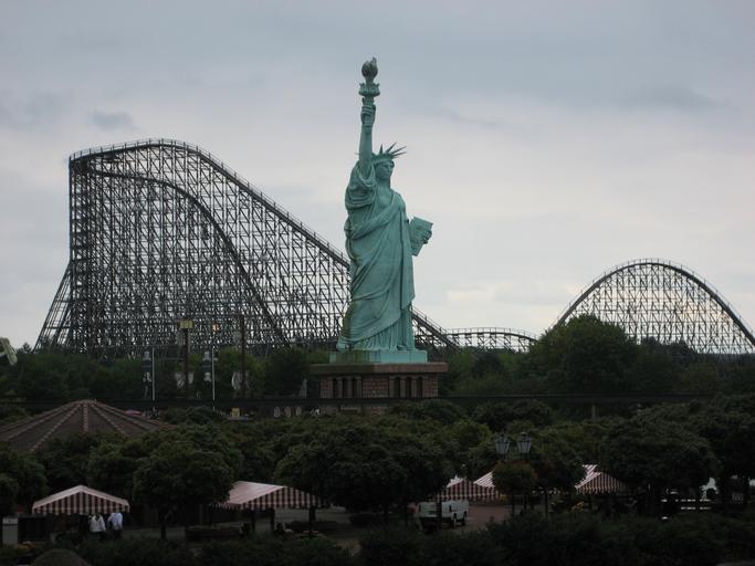 Keywords: theme park pleasure fun roller coaster statue of liberty