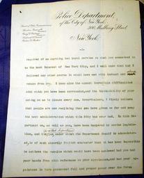 | Keywords: Theodore Roosevelt resignation 002.jpg This is page two of Theodore Roosevelt's resignation letter to the Mayor of New York ceding his position as President of the New York Police Department on 17 April 1897 The text is digitized at s Resignation letter Roosevelt Scans are taken from an auction of the letter http //cgi ebay com/THEODORE-ROOSEVELT-Letter-of-Resignation-NYPD_W0QQitemZ320000215450QQihZ011QQcategoryZ33776QQrdZ1QQcmdZViewItem non-permanent online page Additional important information regarding source This letter was stolen in 1974 Additional important information regarding source This letter was stolen in 1974 This letter was in the possession of Margaret Daisy Suckley Daisy was confidant to Franklin Roosevelt a sixth cousin and archivist at the Hyde Park Presidential Library This may have been the source of the revised draft letter Daisy gave it to Francis and Mary Crowell Frank Crowell framed the letter and displayed it in his office at his residence at 17 Mill Street in Rhinebeck NY From Francis and Mary Crowell the letter passed to Janet Montgomery Baldwin Janet T Baldwin lived with Frank and Mary From Janet it passed to Anne B Cox daughter of Janet and then to Michael and Charles Cox sons of Anne residing at 3 N Randolph Ave Poughkeepsie NY In 1973 worried about the safety of the letter Michael folded the letter around a piece of cut cardboard and sealed it behind a framed envelope with an uncut pair of black Washington stamps that hung in a frame on the wall of Cox's bedroom The letter with black Washington stamps was posted circa 1850 and written on blue linen paper The letter was between Eugene Lynch and Ogden Lynch ancestors of Francis Crowell concerning their dry-goods and mining supply trade in Coloma CA The Lynch letter and the Roosevelt letter hidden behind it along with other antiquities including original bills of lading from the Flying Cloud referenced in Lynch's letter were stolen in June 1974 by coworkers who were visiting Anne Cox Anne was packing and making preparations to move her family to California within days of the theft The theft was witnessed by a friend of Michael The friend 15 years old challenged the thieves when they attempted to remove some of Friend's personal property He then noticed articles the thieves had placed in their car but when challenged by the friend the thieves told him the articles were theirs and the friend believed them The full significance was not understood until Michael Cox reported the theft of the article upon arrival and unpacking in California Cox was a minor and the thieves vehemently denied the theft and Cox was now in California so the police did not follow up The image here clearly shows the fold lines of the frame in which Michael Cox placed it 1897-04-17 Theodore Roosevelt Theodore Roosevelt resignation police commissioner 1919 |