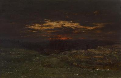 Keywords: Théodore Rousseau - Hoarfrost - Walters 3725.jpg During the winter of 1844/45 Théodore Rousseau shared quarters with fellow painter Jules Dupré to the east of Paris near l'Îsle-Adam on the Oise River In this view showing the effects of frost on the sloping terrain Rousseau broke with Academic practice by working outdoors for a week painting directly on the canvas In so doing he bypassed the distinction between the outdoor sketch and the finished painting which was traditionally completed in the studio 1845 Oil on canvas cm 63 5 98 ; Framed H with build-up 40 1/8 x W 53 7/8 x D 6 3/8 in 101 92 x 136 84 x 16 19 cm accession number 37 25 5408 Paul Casimir-Périer Paris by purchase from the artist Durand-Ruel date and mode of acquisition unknown Troyon date and mode of acquisition unknown Troyon Sale Paris 1866 no 568 Collection Bocquet Lille date and mode of acquisition unknown Laurent-Richard Sale Paris 1873 no 44 Durand-Ruel 1873 by purchase Collection Febore date and mode of acquisition unknown Beurnonville Sale Paris 1880 no 45 Goupil date and mode of acquisition unknown William T Walters Baltimore December 26 1882 by purchase George Lucas as agent Henry Walters city Baltimore Walters Art Museum Henry Walters Acquired by William T Walters 1882 The Rise of Landscape Painting in France Corot to Monet The Currier Gallery of Art Manchester Manchester; IBM Gallery of Science and Art; Dallas Museum of Art Dallas; High Museum of Art Atlanta 1991-1992 Before Monet Landscape Painting in France and Impressionist Masters Highlights from The Walters Collection The Walters Art Gallery Baltimore 1998 Highlights from the Collection The Walters Art Gallery Baltimore 1998-2001 Vive la France French Treasures from the Middle Ages to Monet The Walters Art Gallery Baltimore 1999-2000 Triumph of French Painting Masterpieces from Ingres to Matisse Baltimore Museum of Art Baltimore; Philbrook Museum of Art Tulsa; Norton Museum of Art West Palm Beach; Royal Academy of Arts London; Albright-Knox Art Gallery Buffalo; Dayton Art Institute Dayton 2000-2002 19th Century Masterpieces from the Walters Art Museum Santa Barbara Museum of Art Santa Barbara; Jack S Blanton Museum of Art Austin 2010-2011 The Works of Antoine-Louis Barye American Art Gallery New York New York 1889-1890 Barbizon Revisited Fine Arts Museums of San Francisco San Francisco; Toledo Museum of Art Toledo; The Cleveland Museum of Art Cleveland; Museum of Fine Arts Boston Boston 1962-1963 Theodore Rousseau 1812-1867 Musée du Louvre Paris 1967-1968 A Baltimorean in Paris George A Lucas 1860-1909 The Walters Art Gallery Baltimore 1979 A Magnificent Age Masterpieces from the Walters Art Museum Baltimore The Nelson-Atkins Museum of Art Kansas City; Mint Museum of Art Charlotte; The Walters Art Museum Baltimore 2002-2004 The Road to Impressionism Landscapes from Corot to Manet The Walters Art Museum Baltimore 2004-2005 The Road to Impressionism Barbizon Landscapes from the Walters Art Museum The Dixon Gallery and Gardens Memphis; The Frick Art Historical Center Pittsburgh 2008-2009 place of origin L'ÃŽsle-Adam France Walters Art Museum license 2D Paintings by Théodore Rousseau French paintings in the Walters Art Museum 1845 oil on canvas paintings in the United States 1840s paintings from France Vive la France French Treasures from the Middle Ages to Monet