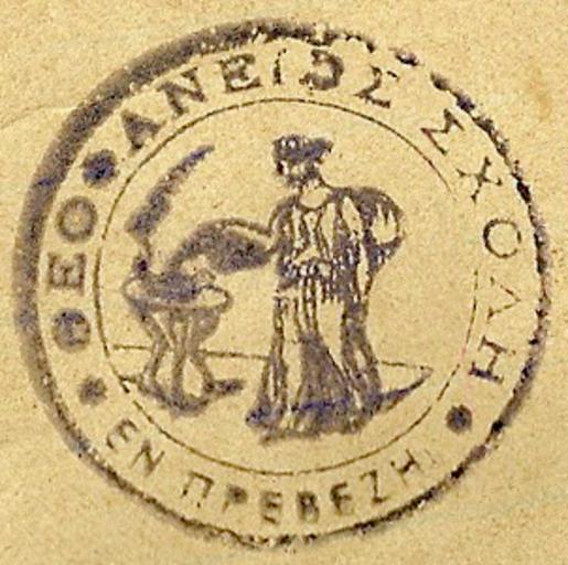 | Keywords: Theofanios Stamp 1911.jpg en The seal of the Theofaneios School of Preveza from an envelop of 12 November 1911 Θεοφανείου Σχολής Πρεβέζης α ό φάκελο με ημερομηνία 12 οεμβρίου 1911 1911-11-12 en Nikos D Karabelas stamp collection Preveza Greece el Συλλογή σφραγίδων ίκου Δ Καράμ ελα Πρέβεζα Institution Actia Nicopolis Θεοφάνειος Σχολή Πρεβέζης PD-old PD-US Template Cc-by-4 0 Σφραγίδες Preveza Rubber stamps Cancellations Seals Scanned with HP PhotoSmart C4600 | ||||