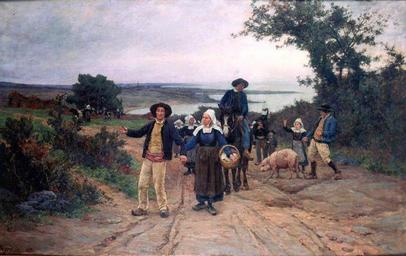 | Keywords: Théophile Deyrolle - L'Arrivée au Pardon de Fouesnant.jpg Artwork L'Arrivée au Pardon de Fouesnant Oil on canvas cm 103 133 Pau Musée des beaux-arts bottom left Deyrolle 1881 Accession number 893 1 1 http //www culture gouv fr/Wave/image/joconde/0472/m009804_0002192_p jpg Base Joconde 1881 Creator Théophile Deyrolle Other versions 00980001821 Brittany by Théophile Deyrolle Paintings of people from France Paintings of Fouesnant Pigs in art 1881 paintings Musée des Beaux-Arts de Pau Pardon breton Traditional costumes of Bretagne in art 1881 in Bretagne PD-old |