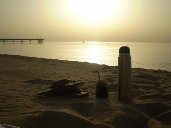 Keywords: thermo sea sunset beach matt dawn flip flops tea badalona