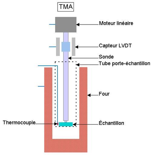 Keywords: Thermomechanical analyzer.png Fr Schéma de principe d'un analyseur thermomécanique TMA En Scheme in principle of a thermomechanical analyzer TMA Own 2008-04 Cjp24 Materials science