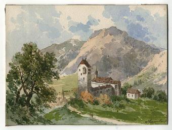 | Keywords: Theuerkauf Burg.jpg de Blick auf die Rest einer Burg in Tirol unten links ein kleines Städtchen Aquarell unten rechts signiert Theuerkauf Bildgröße 14 5 × 19 5 cm http //www steutzger info by 1911 Creator Gottlob Theuerkauf PD-old-100 Gottlob Theuerkauf Watercolor paintings of buildings Paintings of castles Buildings in art Images from Antiquariat Steutzger |