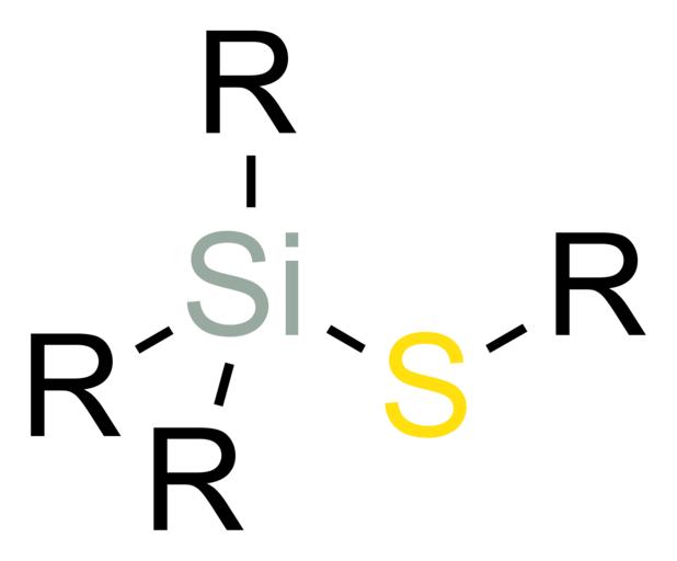 | Keywords: Thiosilane-general-2D-colour.png General structural formula of thiosilanes compounds containing one silicon-sulfur single bond Image generated in http //www cambridgesoft com/software/overview aspx ChemDraw Professional 15 0 Own 2016-05-03 Ben Mills Benjah-bmm27 Images by Ben Mills Silicon-sulfur compounds |