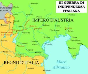 | Keywords: Third Italian War of Independence It.svg Cartina dei luoghi della III guerra di indipendenza Versione vettoriale di Image III guerra di Indipendenza jpg Da completare con gli itinerari delle truppe e le date delle battaglie Map of the sites of the Third Italian War of Independence Vectorial version of Image III guerra di Indipendenza jpg To be completed with the itineraries of the troops and the dates of the battles Own 2008-01-22 Decan Maps of the history of Italy 1870 Third Italian War of Independence |