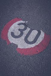 Keywords: thirty 30 shield mark road zone 30 speed limitation note zone grey caution road sign street sign