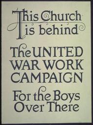 | Keywords: "This Church is behind. The United War Work Campaign For The Boys Over There." - NARA - 512696.tif Scope and content General notes 512696 Local identifier 4-P-258 U S Food Administration Educational Division Advertising Section 01/15/1918 - 01/1919 Still Picture Records Section Special Media Archives Services Division NWCS-S National Archives at College Park 8601 Adelphi Road College Park MD 20740-6001 other date circa 1917 1919 Record group Record Group 4 Records of the U S Food Administration 1917 - 1920 Record group ARC 333 World War I Posters compiled 1917 - 1919 Series ARC 512439 File unit File unit ARC Variant control numbers NAIL Control Number NWDNS-4-P-258 yes Other versions <gallery> File This_Church_is_behind _The_United_War_Work_Campaign_For_The_Boys_Over_There _-_NARA_-_512696 tif tif File This_Church_is_behind _The_United_War_Work_Campaign_For_The_Boys_Over_There _-_NARA_-_512696 jpg jpg </gallery> NARA-cooperation PD-USGov World War I posters of the United States United States Food Administration NARA TIF images with categorized JPGs |
