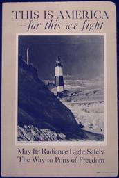 | Keywords: THIS IS AMERICA... MAY ITS RADIANCE LIGHT SAFELY THE WAY TO PORTS OF FREEDOM. - NARA - 515741.jpg Scope and content General notes 515741 Local identifier 44-PA-2046 Office for Emergency Management Office of War Information Domestic Operations Branch Bureau of Special Services 03/09/1943 - 09/15/1945 Still Picture Records Section Special Media Archives Services Division NWCS-S National Archives at College Park 8601 Adelphi Road College Park MD 20740-6001 1941 - 1945 Record group Record Group 44 Records of the Office of Government Reports 1932 - 1947 Record group ARC 373 World War II Posters compiled 1942 - 1945 Series ARC 513498 File unit File unit ARC Variant control numbers NAIL Control Number NWDNS-44-PA-2046 Other versions <gallery> File THIS_IS_AMERICA _MAY_ITS_RADIANCE_LIGHT_SAFELY_THE_WAY_TO_PORTS_OF_FREEDOM _-_NARA_-_515741 tif tif File THIS_IS_AMERICA _MAY_ITS_RADIANCE_LIGHT_SAFELY_THE_WAY_TO_PORTS_OF_FREEDOM _-_NARA_-_515741 jpg jpg </gallery> NARA-cooperation PD-USGov This is America series of World War II posters from the United States |