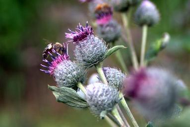 Keywords: thistle flower bee meadow summer plant spikes nature flowering thistle flower thistles violet