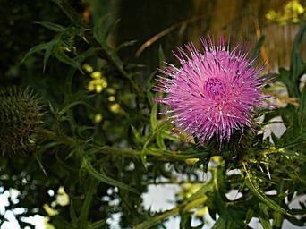 Keywords: thistle flower purple violet macro water water-level