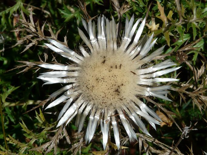 Keywords: thistle silver thistle carlina acaulis silver silvery weather thistle carlina flowering composites asteraceae
