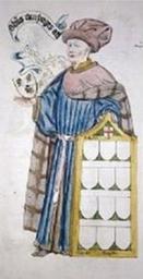 | Keywords: Thomas Canynges, Lord Mayor 1456–1457, in aldermanic robes (c 1450) by Roger Leigh.jpg fl 1450 en A watercolour portrait of w Thomas Canynges fl 1450 who was Lord Mayor of London in 1456 “1457 having been elected Alderman for Aldgate ward in 1445 and a member of the Worshipful Company of Grocers Thomas was the eldest brother of William II Canynges c 1399 “1474 a merchant and shipper from Bristol and one of the wealthiest private citizens of his day <p>The portrait was one of a series of 15th-century Lord Mayors painted in watercolour on paper by Roger Leigh The series places emphasis on the subjects' armorials shown in escutcheons Thomas Canynges is shown wearing his aldermanic robes and holding the Canynges arms in his right hand the of the arms of his descendant Canning in cite book Bernard Burke en Bernard Burke The General Armory of England Scotland Ireland and Wales Comprising a Registry of Armorial Bearings from the Earliest to the Present Time London Harrison 1884 166 1647426 The arms of the City of London are depicted under his left hand in the pediment of the framed shields </p> c 1450 watercolour paper cm 38 London Metropolitan Archives Main Print Collection <br /> Clerkenwell London England United Kingdom accession number catalogue no k1306497; record no 32134 object history Owned by the Corporation of the City of London credit line http //collage cityoflondon gov uk/collage/app service external/Item sp I 3ALeigh 2C+Roger+ 28fl 1450 29 3A 3A sp 29389 sp X http //collage cityoflondon gov uk/collage/app service external/Item sp I 3ALeigh 2C+Roger+ 28fl 1450 29 3A 3A sp 29389 sp X; originally uploaded to https //en wikipedia org en wikipedia by Lobsterthermidor wikipedia en on 2011 10 11 PD-old-100-1923 Original upload log en wikipedia ThomasCanynges jpg 2011-10-11 21 01 Lobsterthermidor 149×291× 11480 bytes <nowiki>Thomas Canynges Mayor of London 1456-7 one of a series of 15th c Lord Mayors painted in watercolour on paper by Roger Leigh fl 1450 Collection of Corporation of the City of London London Metropolitan Archives main print collection k1306497</nowiki> 1450s watercolor paintings 15th-century portrait paintings of standing men 15th-century portraits with coat of arms Lord Mayors of London Sheriffs of the City of London Three-quarter view portrait paintings of men facing left William II Canynges Worshipful Company of Grocers Canning Canynges arms |