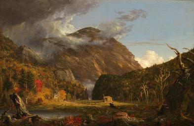 | Keywords: Thomas Cole - A View of the Mountain Pass Called the Notch of the White Mountains.jpg Artwork Creator Thomas Cole 1839 oil canvas cm 102 155 8 National Gallery of Art Gallery 64 object history Provenance Commissioned 1839 by Rufus L Lord 1782-1869 New York Jonathan Sturges 1802-1874 New York and Fairfield Connecticut; his son Henry C Sturges d 1924 Fairfield Connecticut; his wife Mrs Henry C Sturges Fairfield Connecticut; LeRoy Ireland Philadelphia probably early 1930s but certainly by 1944; purchased June 1944 by Vose Galleries Boston ; sold 5 April 1945 to Sanitary Scale Company Belvidere Illinois; acquired 1966 by Kennedy Galleries New York ; purchased 25 May 1967 by NGA lower left T Cole / 1839 accession number 1967 8 1 http //www nga gov/fcgi-bin/tinfo_f acc 1967 8 1 National Gallery of Art Washington DC PD-old-100 The Notch of the White Mountains Crawford Notch by Thomas Cole |