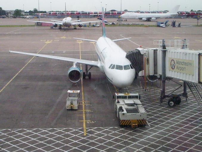 | Keywords: Thomas Cook Aircraft.jpg  en A Thomas Cook aircraft at a gate at Manchester Airport T2 Airside Own 3mgrant 2004-06-26 Airbus A320 of First Choice Airways at Manchester Airport 2004 at Manchester Airport First Choice Airbus A320 First Choice Airways Pushback tractors Jet bridges Taken with Kodak EasyShare CX6200 |
