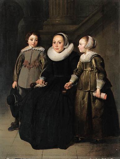 | Keywords: Thomas de Keyser - Portrait of a seated woman and two children 1635 - d1449352x.jpg en Portrait of a lady full-length seated in a black dress with white ruff and cap holding a handkerchief with her son in a grey doublet with slashed sleeves holding a hat and her daughter in a green dress with white collar and cuffs and embroidered cap holding a doll Lot 60 / Sale 6097 1635 oil on panel 66 7 cm x 50 8 cm http //www christies com/lotfinder/lot/thomas-de-keyser-portrait-of-a-lady-1449352-details aspx Creator Thomas de Keyser Built into the overmantel of House H673 Plompetorengracht Utrecht gift of W J Royards van den Ham Museum Kunstliefde Utrecht by 1885 Centraal Museum Utrecht in 1918 no 1109 on loan to the Rijksmuseum Amsterdam in 1924 no 1349A1 by whom sold in 1958 for 20 000 florins to Piet de Boer other versions http //ridderschapkwartier blogspot nl/2011/03/de-milan-en-krieckx-een-familielegende html PD-Art-100 Thomas de Keyser Images from Christie's |