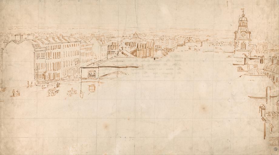 | Keywords: Thomas Girtin - Sketch for the Eidometropolis- Panorama, Great Surrey Street and Christchurch, Southwark - Google Art Project.jpg ca 1797 1802 Southwark 1775 London 1802 Thomas male 2333432 Girtin British 1775 - 1802 /collection/yale-center-for-british-art/artwork/sketch-for-the-eidometropolis-panorama-great-surrey-street-and-christchurch-southwark-thomas-girtin/2086891/ Thomas Girtin Artist /artist/thomas-girtin/4130684/ 4130684 /collection/yale-center-for-british-art/ Yale Center for British Art 2305845 http //britishart yale edu/ 2/23/2012 11 47 55 PM /collection/yale-center-for-british-art/artwork/sketch-for-the-eidometropolis-panorama-great-surrey-street-and-christchurch-southwark-thomas-girtin/2086891/ 1797 ca 1797-1802 architectural subject horses animals people roofs windows rooftops churches buildings streets weathervanes carriages carts panoramas cityscape drawing Pen and brush with brown ink with graphite ruling on moderately thick slightly textured blued white wove paper 292 2086891 False 1802 3/24/2012 10 59 40 AM YCBA/lido-TMS-5972 http //collections britishart yale edu/vufind/Record/1670244 Yale Center for British Art Paul Mellon Collection drawing 1790 1810 Northumberland Creation w502 x h292 cm ca 1797-1802 False 1 79649122807018 Item sketch-for-the-eidometropolis-panorama-great-surrey-street-and-christchurch-southwark-thomas-girtin Sketch for the Eidometropolis Panorama Great Surrey Street and Christchurch Southwark s 502 <nowiki>Inscribed in pen and brown ink throughout on roofs slate ; in black ink lower right TEL collectors stamp; in pen and black ink verso center Although this drawing does not seem to have been used by Thomas Girtin for his panorama of London the squaring up of this drawing is exactly the same as upon drawings for this work -- the squares are the same size and the numbering is by the same hand -- Thomas Lowinsky 1938 -- </nowiki> Inscription _Marks Inscribed with stamp of Thomas E Lowinsky in black ink lower right TEL in monogram not in Lugt Inscription _Signed_and_Dated Not signed not dated Not on view Pen and brush with brown ink with graphite ruling on moderately thick slightly textured blued white wove paper architectural subject horses animals people roofs windows rooftops churches buildings streets weathervanes carriages carts panoramas cityscape drawing special url_id vQFtBc56liKf7w PD-old-100-1923 1802 Google Art Project works by Thomas Girtin Thomas Girtin Sketches of art works History of the London Borough of Southwark London Borough of Southwark in art |