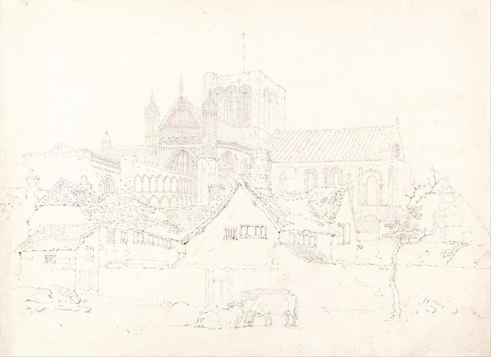 | Keywords: Thomas Girtin - Winchester Cathedral, Hampshire, from the North-East - Google Art Project.jpg ~ 1795 Southwark 1775 London 1802 Thomas male 2333432 Girtin British 1775 - 1802 /collection/yale-center-for-british-art/artwork/winchester-cathedral-hampshire-from-the-north-east-thomas-girtin/2423750/ Thomas Girtin Artist /artist/thomas-girtin/4130684/ 4130684 /collection/yale-center-for-british-art/ Yale Center for British Art 2305845 http //britishart yale edu/ 2/23/2012 11 41 15 PM /collection/yale-center-for-british-art/artwork/winchester-cathedral-hampshire-from-the-north-east-thomas-girtin/2423750/ 1790 ca 1795 architectural subject cows windows tree buildings Graphite on medium moderately textured blued white laid paper 238 2423750 False 1800 3/24/2012 7 43 42 PM YCBA/lido-TMS-5878 http //collections britishart yale edu/vufind/Record/1670139 Yale Center for British Art Paul Mellon Collection drawing 1790 1810 Yorkshire Creation w322 x h238 cm ca 1795 False 1 37634408602151 Item winchester-cathedral-hampshire-from-the-north-east-thomas-girtin Winchester Cathedral Hampshire from the North-East w 322 <nowiki>Inscribed in the artist's hand in purple pencil verso center left T Girtin Winchester Cathedral St Col Dr Monro Alex Monro Hector Monro May Le Geyt given to me by Rev A Hone gt grandson Dr M Sept 1942 </nowiki> Inscription _Marks watermark J Whatman / 1794 letters Inscription _Signed_and_Dated Not signed not dated Not on view Graphite on medium moderately textured blued white laid paper architectural subject cows windows tree buildings special url_id lgEXq0SSESrreg PD-old-100-1923 1802 Google Art Project works by Thomas Girtin Thomas Girtin 1790s drawings Exterior of Winchester Cathedral |