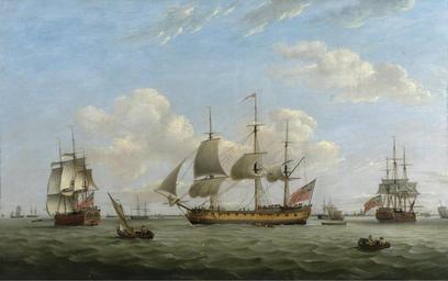 | Keywords: Thomas Luny - Men-of-War HMS ‚Maria Anna‘, ‚Earl of Chatham‘ and ‚Achilles‘ off a coastal town.jpg Artwork Creator Thomas Luny Men-of-War HMS Maria Anna Earl of Chatham and Achilles off a coastal town 1793 oil canvas cm 104 164 5 object history Anonymous sale Christie's London 14th April 1989 lot 69 credit line http //www sothebys com/de/auctions/ecatalogue/2007/the-marine-sale-l07135/lot 11 html Sotheby's London 2007 11 06 The Marine Sale lot 11 Other versions PD-Art-100 Thomas Luny 18th-century sailing ships in paintings Images from Sotheby's 18th-century paintings location missing 1793 paintings |