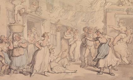 | Keywords: Thomas Rowlandson - Angry Scene in a Street - Google Art Project.jpg Google Art Project watercolor London 1756 London 1827 Thomas male 2332358 Rowlandson British 1756 - 1827 /collection/yale-center-for-british-art/artwork/angry-scene-in-a-street-thomas-rowlandson/2352341/ Thomas Rowlandson Artist /artist/thomas-rowlandson/4131603/ 4131603 /collection/yale-center-for-british-art/ Yale Center for British Art 2305845 http //britishart yale edu/ 2/23/2012 9 24 54 PM /collection/yale-center-for-british-art/artwork/angry-scene-in-a-street-thomas-rowlandson/2352341/ 1805 between 1805 and 1810 fighting crowd kissing arguing fish laundry pickpockets men women doorways street basket cityscape Watercolor with pen and red-brown and gray-brown ink over graphite on medium wove paper mounted on moderately thick cream laid paper 146 2352341 False 1810 3/24/2012 1 23 12 PM YCBA/lido-TMS-1836 http //collections britishart yale edu/vufind/Record/1666757 Yale Center for British Art Paul Mellon Collection painting 1800 1820 London Creation w238 x h146 cm between 1805 and 1810 False 1 65161290322581 Item angry-scene-in-a-street-thomas-rowlandson Angry Scene in a Street a 238 Inscribed in black ink lower right TEL collector's stamp Inscription _Signed_and_Dated Not signed not dated Not on View Watercolor with pen and red-brown and gray-brown ink over graphite on medium wove paper mounted on moderately thick cream laid paper fighting crowd kissing arguing fish laundry pickpockets men women doorways street basket cityscape special url_id wQH9yy0AylkLRA PD-old-100-1923 1827 Drawings and watercolours by Thomas Rowlandson Google Art Project works by Thomas Rowlandson |