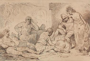 | Keywords: Thomas Rowlandson - Banditti - Google Art Project.jpg No inscription Inscription _Signed_and_Dated Not signed not dated Not on View Pen and brown black and gray ink on moderately thick moderately textured blued white laid paper sitting men woman swords pots genre subject special url_id _AHWJgjE2xXj4A PD-old-100-1923 1827 Drawings and watercolours by Thomas Rowlandson Google Art Project works by Thomas Rowlandson Group portraits with 5 persons | ||||