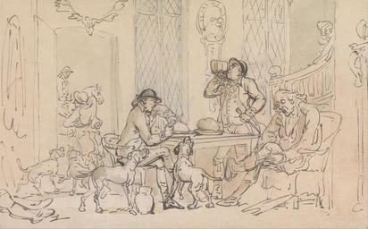 | Keywords: Thomas Rowlandson - Breakfast before the Hunt - Google Art Project.jpg Inscribed in black ink on mount lower left No 11 ; Verso in graphite lower center D26692 Inscription _Signed_and_Dated Not signed not dated Not on View Pen and black and gray ink with brown and blue wash on medium moderately textured beige laid paper mounted on moderately thick moderately textured cream wove paper dogs animals dinner eating drinking meal breakfast horse animal interior men hunters hunt food antlers doorway windows chairs table saddle sporting art room special url_id DwFQvtzgvASQIQ PD-old-100-1923 1827 Drawings and watercolours by Thomas Rowlandson Google Art Project works by Thomas Rowlandson Hunting in art |