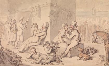 | Keywords: Thomas Rowlandson - A Cavalry Barracks - Google Art Project.jpg No inscription Inscription _Marks watermark similar to Heawood 2774 or 2759 Inscription _Signed_and_Dated Not signed not dated Not on View Watercolor with pen and red-brown and brown ink over graphite on medium slightly textured beige wove paper dogs horses animals boxes containers men women cavalry Box stables barracks broom flute wagon genre subject special url_id YgHvn9L5DJRjSw PD-old-100-1923 1827 Drawings and watercolours by Thomas Rowlandson Google Art Project works by Thomas Rowlandson Cavalry in art |