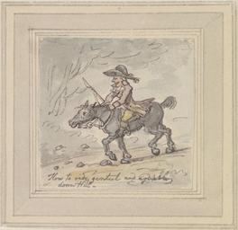 | Keywords: Thomas Rowlandson - How to Ride Genteel and Agreeably Downhill - Google Art Project.jpg Inscribed in pen and gray ink lower center How to ride genteel and agreeable downhill in graphite verso upper lower C Inscription _Signed_and_Dated Not signed not dated Not on View Watercolor with pen and red-brown ink wash over graphite; verso graphite tracing on medium slightly textured beige wove paper mounted on wove paper riding crop horse animal man rocks hat genre subject special url_id 2QHvesbj3gc8uQ PD-old-100-1923 1827 Drawings and watercolours by Thomas Rowlandson Google Art Project works by Thomas Rowlandson Equestrian drawings |